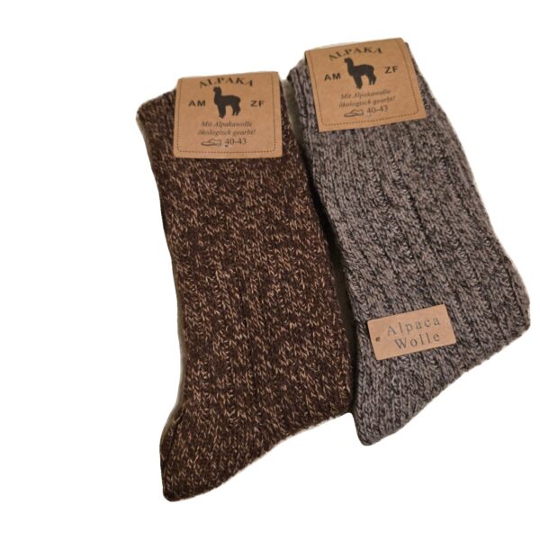 Augstas kvalitātes adītas zeķes ar alpakas vilnas piejaukumu nodrošina lielisku siltuma saglabāšanu un komfortu. Dabīgais materiāls ir elpojošs, patīkams ādai un piemērots ilgai valkāšanai. Elastāns nodrošina labu piegulšanu un formu. Ideāli piemērotas rudenim, ziemai un vēsām dienām.