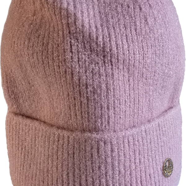 Adīta ziemas cepure ar atloku (Angora + Viskoze)Rozā krāsā